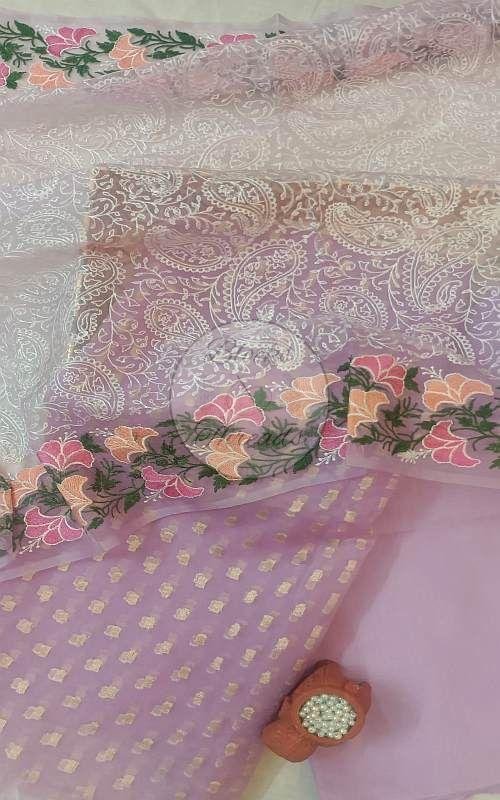 Leading Manufacturers and Wholesaler of Banarsi Organza Silk Mauve Suit Material and Banarsi Organza Silk White Suit Material from Vadodara.