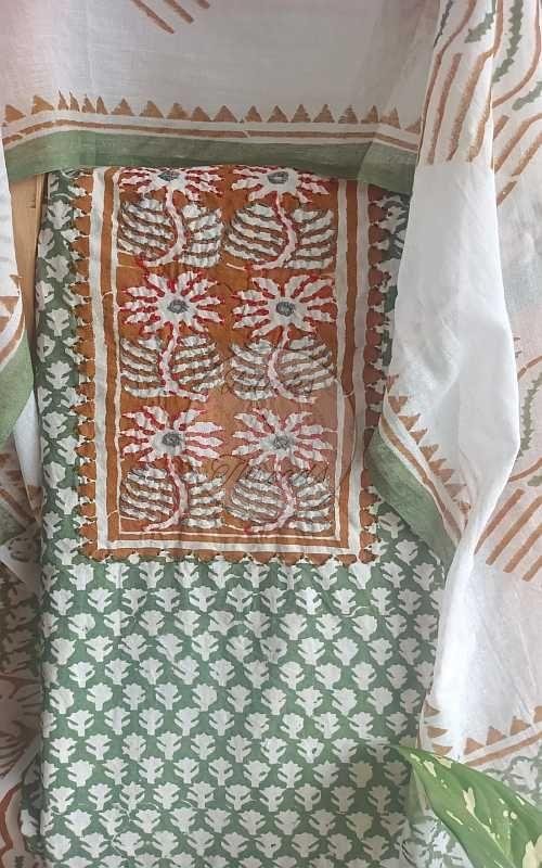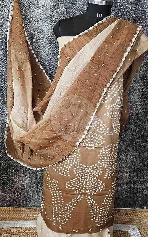 We offer a premium Brown Bandhani Cotton Suit Material with Mul Cotton Dupatta, perfect for creating elegant ethnic outfits. Our cotton suit material comes with a 2.45m length, along with 2.45m bottom material for stitching convenience. The Mul Cotton dupatta adds a touch of sophistication, measuring 2.25m in length. As a Manufacturer and Supplier, we provide stitching facility for a hassle-free experience. Elevate your wardrobe with this high-quality, versatile suit material with dupatta in a rich brown color.