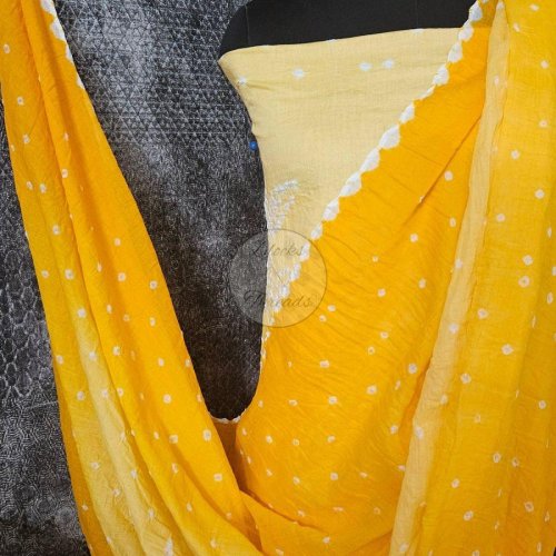 Mango Yellow Bandhani Cotton Crepe Suit
