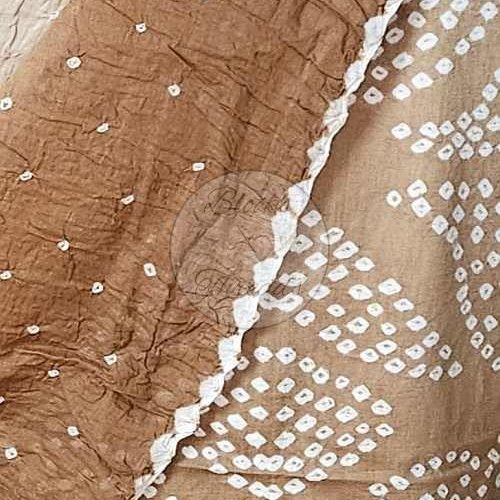 Brown Bandhani Cotton Suit Material with Mul Cotton Dupatta