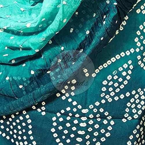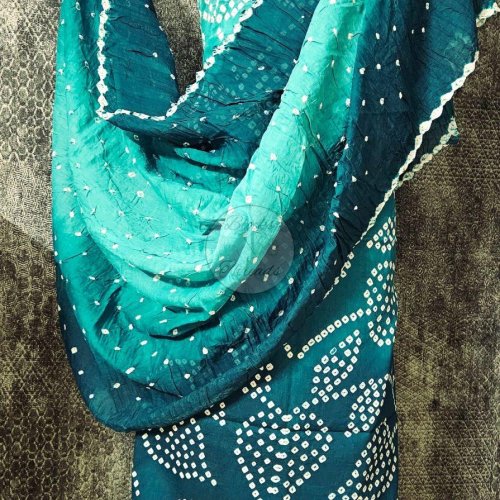 Teal Green Bandhani Cotton Suit Material with Mul Cotton Dupatta