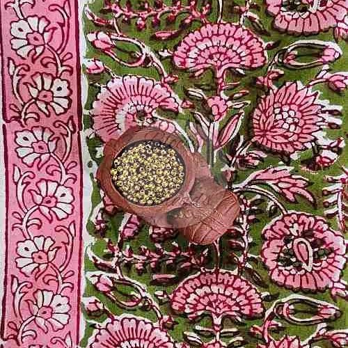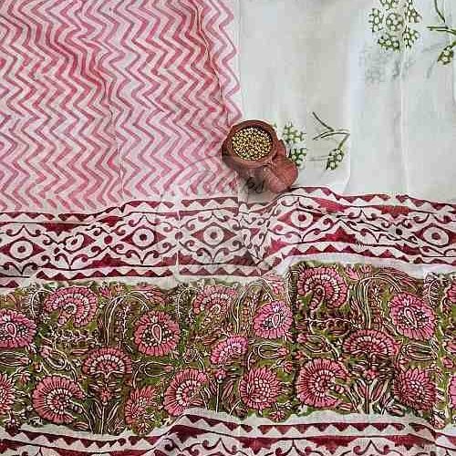 Mehndi Green and Pink Baroda Print Cotton Suit Material
