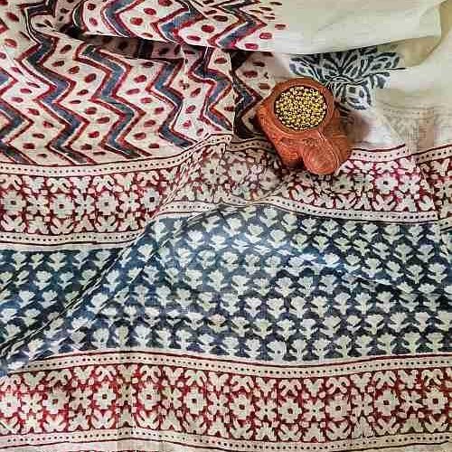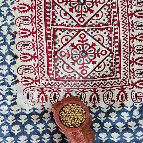 Red and Grey Yoke Embroidered Baroda Print Cotton Suit Material