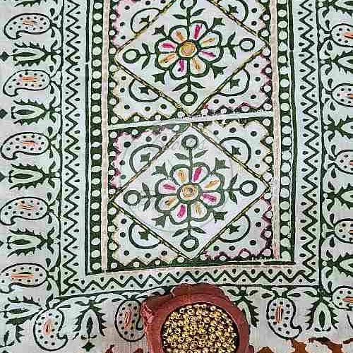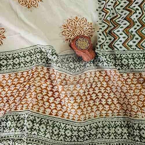 Green and Mustard Yoke Embroidered Baroda Print Cotton Suit Material