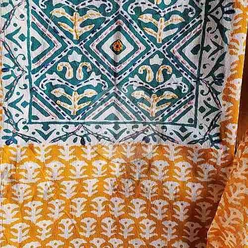 Mustard and Blue Baroda Print Cotton Suit Material
