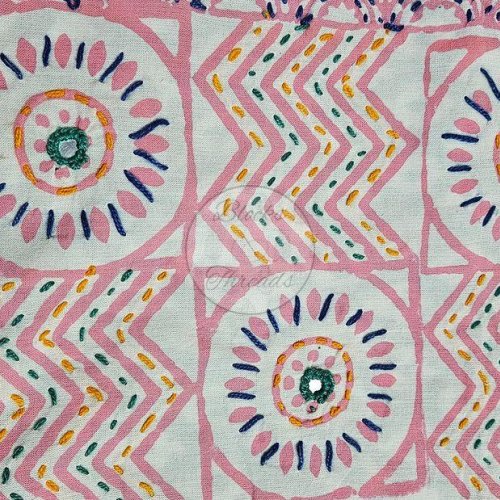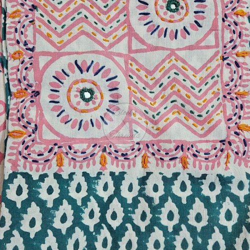 Pink and Green Baroda Print Cotton Suit Material