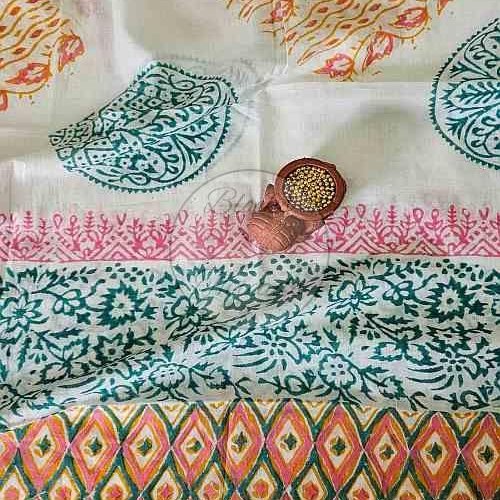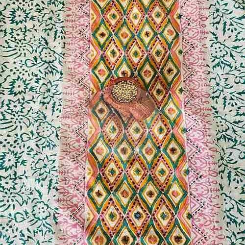 Pink and Green Front Panel Baroda Print Cotton Suit Material