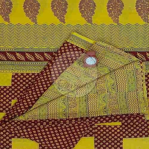Candy Yellow and Maroon Bagh Print Cotton Suit Material