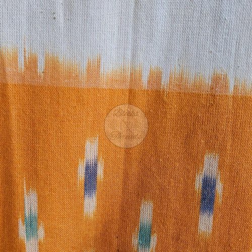 Yellow Ochre and Off White Ikat Weave Weave Cotton Unstitched Suit