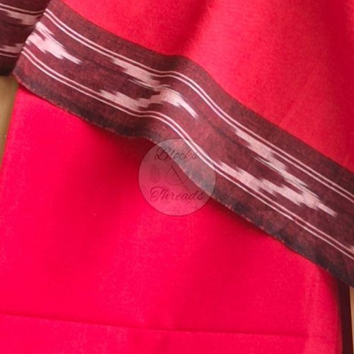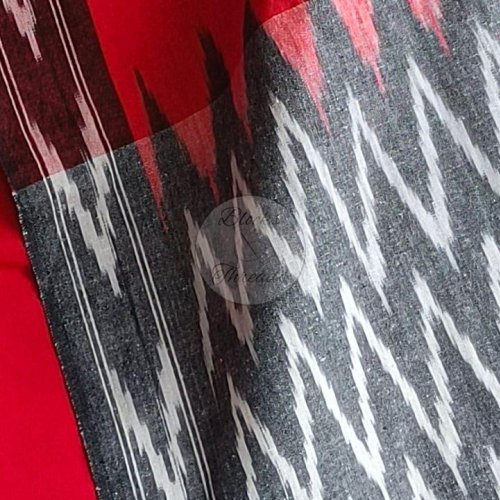 Red and Grey Pochampally Ikat Weave Cotton Unstitched Suit