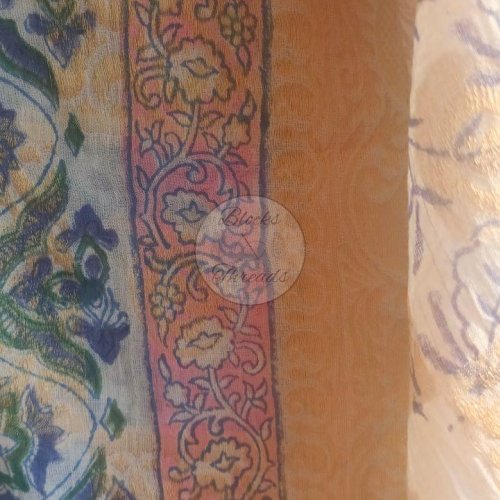 Blue and Green Kalamkari Block Print Cotton Suit Material