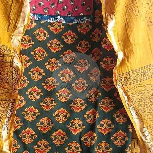 Mustard and Green Gamthi Print Cotton Suit Material