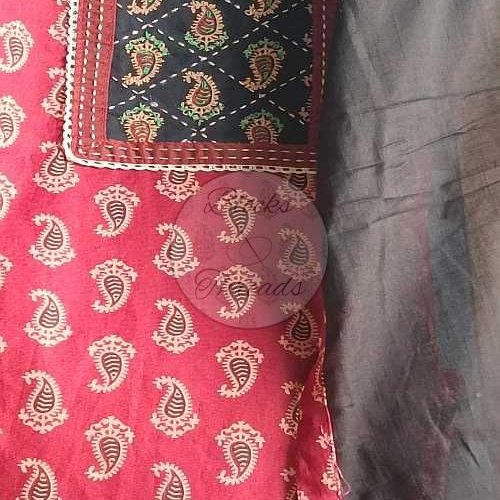 Maroon and Black Gamthi Print Cotton Suit Material