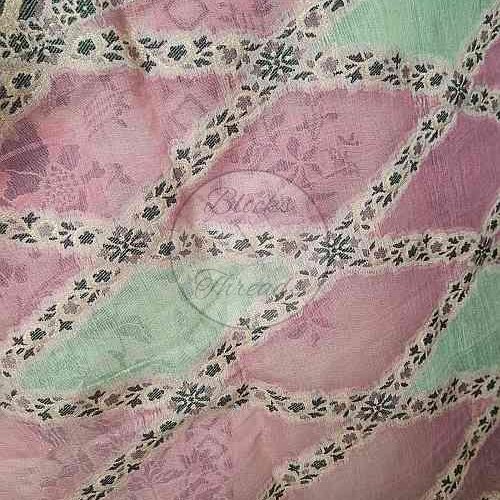 Limegreen and Pastelpink Jacquard Weaved Chanderi Suit Material