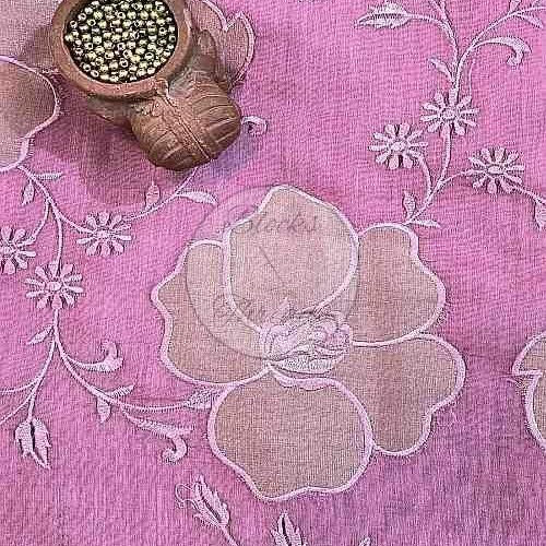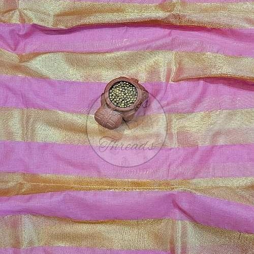 Pink and Gold Mul Chanderi Suit Material with Striped Dupatta