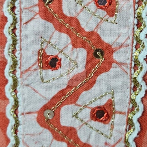 Carrot Orange White Batik Print Dupatta Cotton Suit