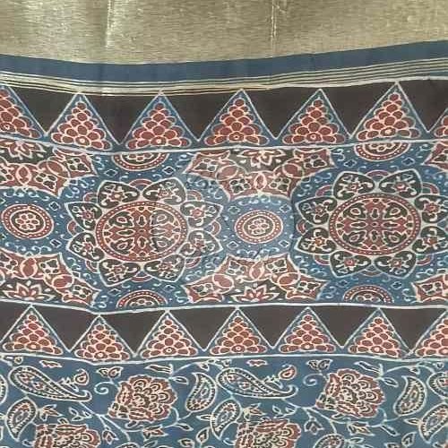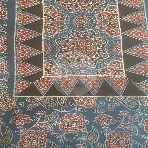 Blue and Maroon Chanderi Ajrakh Print Suit Material