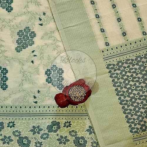 White and Green Premium Cotton Banarsi Weave Suit Material