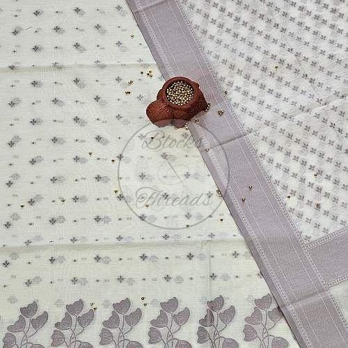 White and Lilac Cotton Banarsi Resham Weave Suit Material