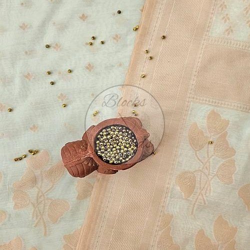 White and Peach Cotton Banarsi Resham Weave Suit Material