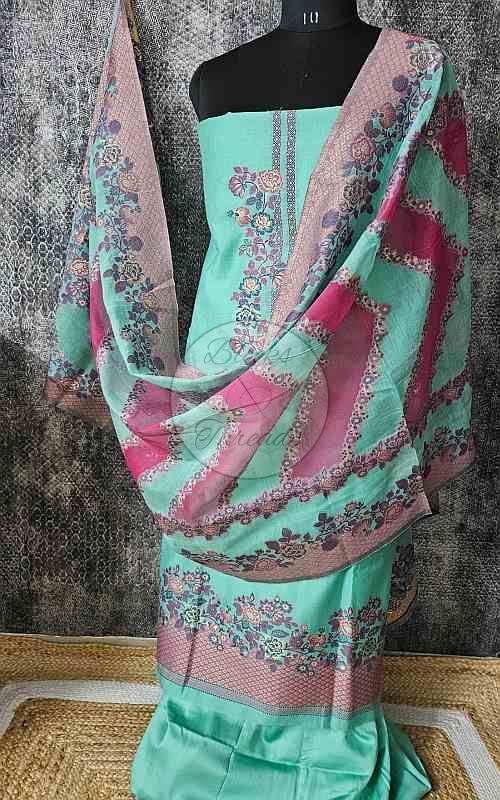 Home › Products › Jacquard Weaves Suit Material › Green And Rani Jacquard Weaved Chanderi Suit Material