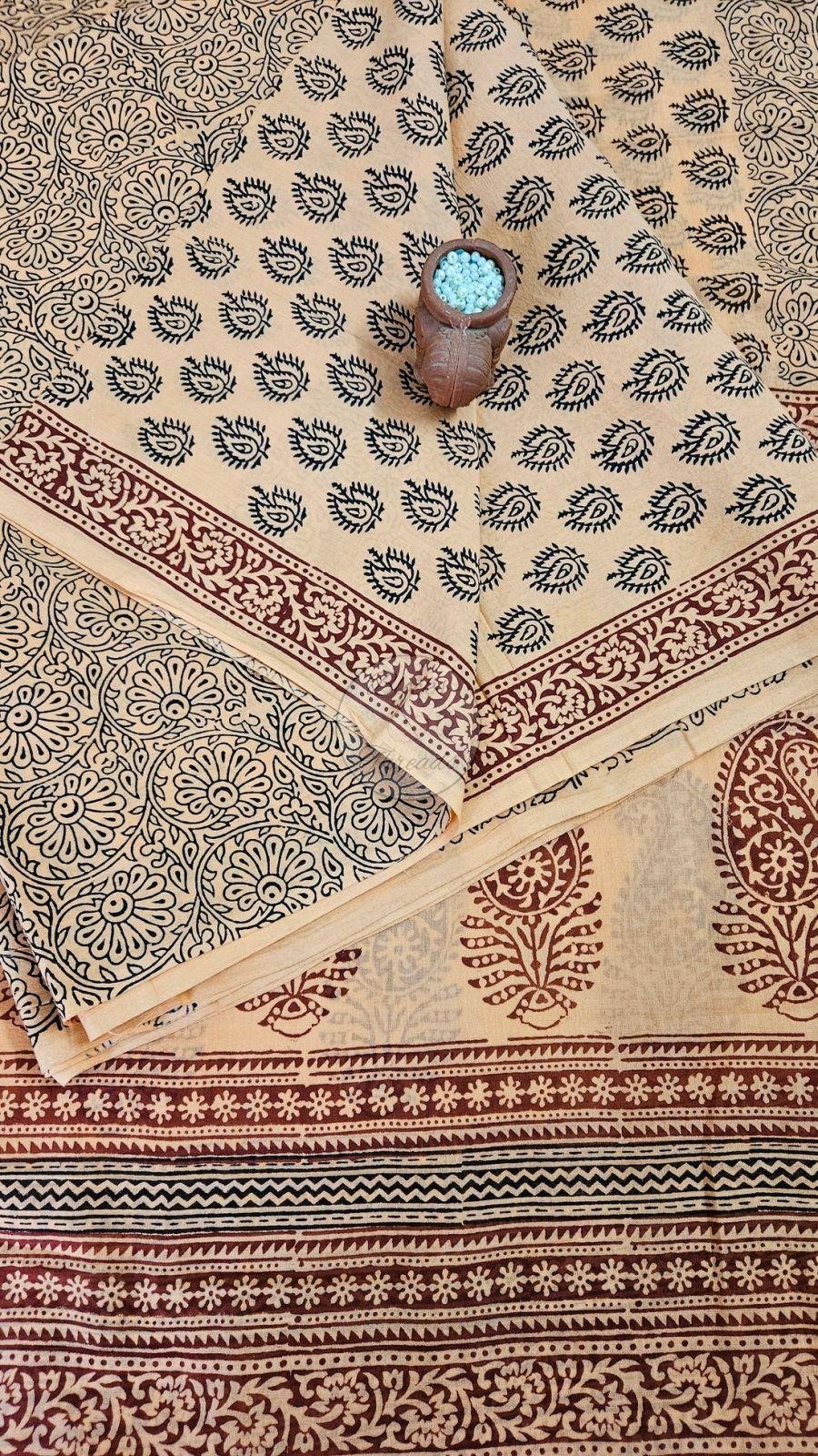 We offer a stylish Peach and Black Bagh Print Cotton Suit Material that includes 2.50 meters of kurta material, 2.20 meters of bottom material, and a 2.25-meter dupatta. Made from high-quality cotton, this suit material is perfect for crafting elegant outfits. Stitching facility is available for your convenience. The beautiful Bagh print adds a traditional touch to the ensemble. Ensure longevity by dry cleaning first. Ideal for manufacturers and suppliers looking to provide premium ethnic wear options to their customers.
